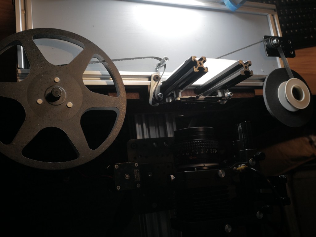 When dealing with motion picture formats and especially smaller gauges, things start to get a little more complicated by a multitude of different factors. Welcome to the dark arts of the telecine. Over the years, along with having film processed and scanned at labs, I’d also on occasion taken to DIYing the odd reel here and there. Filming projections off a piece of card taped to a wall, using condenser lenses and reverse macro set ups fired into a projector lens, either directly, or via a mirror, were all a combination of joy and frustration. All of these took a lot of space, mess and time to set up. It was probably around this time in life that the penny dropped on why good film labs charged so much for these services.