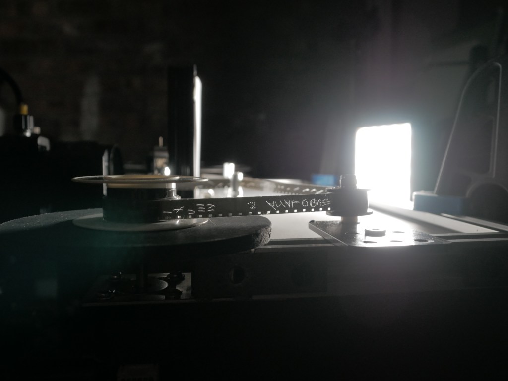 The video above show’s a motion controlled setup for S8/8mm capture I’ve been testing for a couple of years. This has since been revised a couple of times with better rollers, take up spool and a more permanent light source. The film is pulled through the gate by a stepper motor, which is controlled by Dragonframe via an Arduino controller unit. This unit is built to control larger motors for use on turntables and multi axis moco rigs, so is not ideally set for the more delicate movements of a film scanner. It works for these film effects and even allows me to do some weirder stuff, like z axis movements on the film gate if I want. What this can’t do at the moment, is archival capture of films. All the imperfections that I use this for.. gate weave, frame roll, flicker etc are not what you want when transferring valuable old films. I’m cautiously optimistic that this can be modified a bit further, ideally using Dragonframe to capture the frames, while an external unit controls the films path through the gate and could then be used for transfer of films. If you’ve read through this interested in setting up your own film scanner, then I’d advise checking out the many builds on Youtube first, or heading over to the excellent kinograph site, which contains a shed load of advice and technical resources.