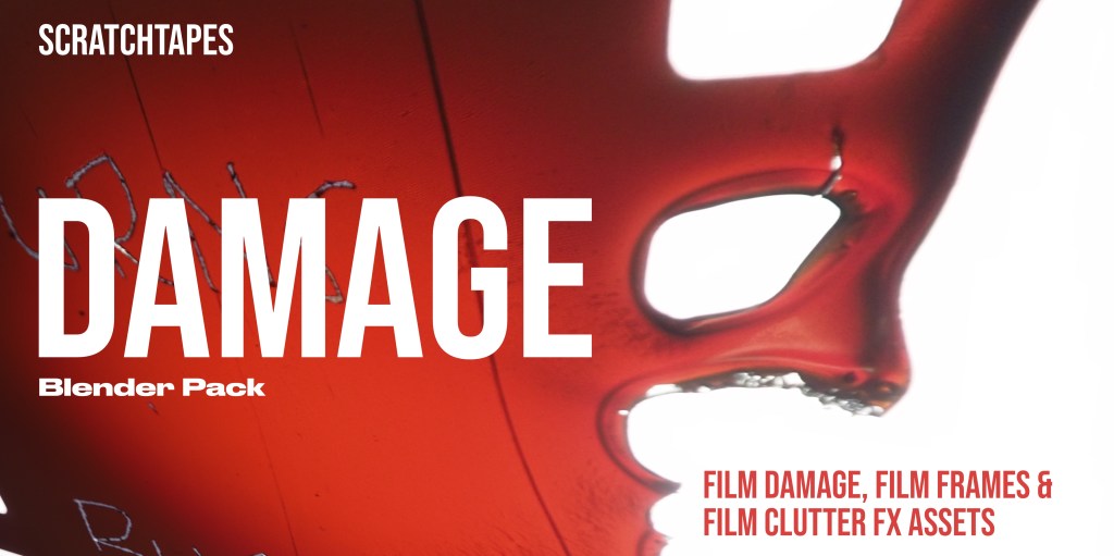 A new Scratchtapes pack, this time geared towards Blender users, has just been uploaded. Damage is a reworking of the files from Frame Damage, with some of the elements reworked into demo Blender projects and an asset collection.